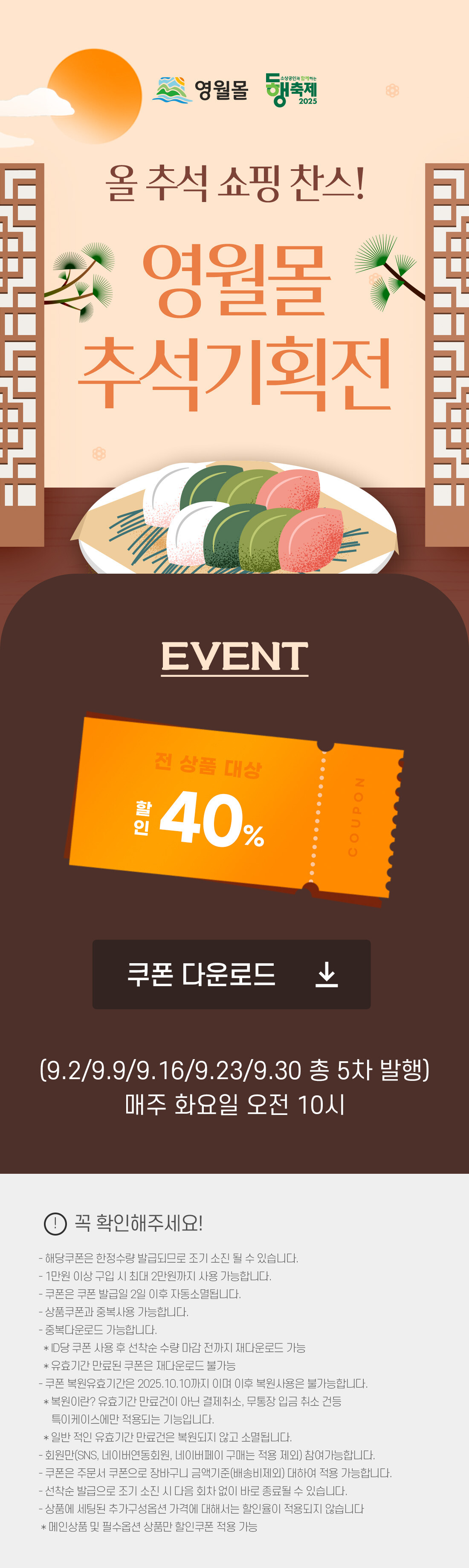 • 2025 영월몰 추석맞이 할인이벤트 시작합니다!